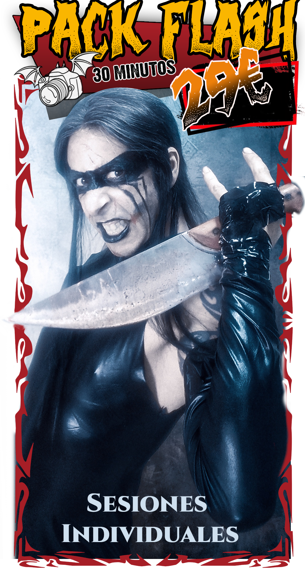 Qué se hace: sesión rápida, enfocada en captar una expresión potente o un retrato con actitud. Se trabaja con 1-5 poses clave, fondo oscuro y luces dramáticas. Qué recibes: 1 foto seleccionada y editada digitalmente con estilo cinematográfico (luces/sombras trabajadas, corrección de color)Entrega: archivo digital en alta calidad listo para compartir en redes o usar como retrato personal.